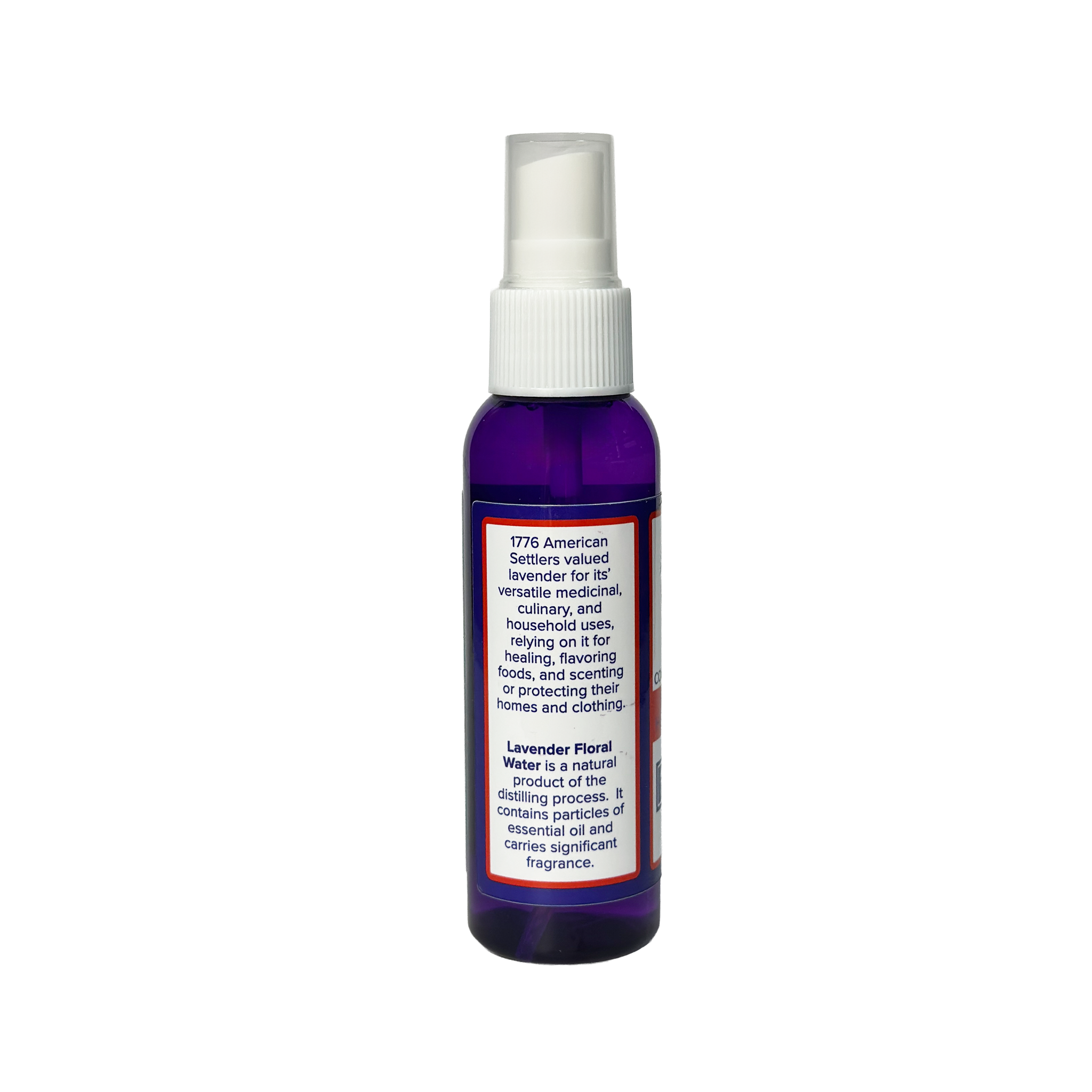 This is a natural lavender floral water which likely was used in 1776 to freshen linen, deodorize rooms, and add to laundry suds.  This mist is safe for modern day sheets and provides a calming aromatherapy experience.