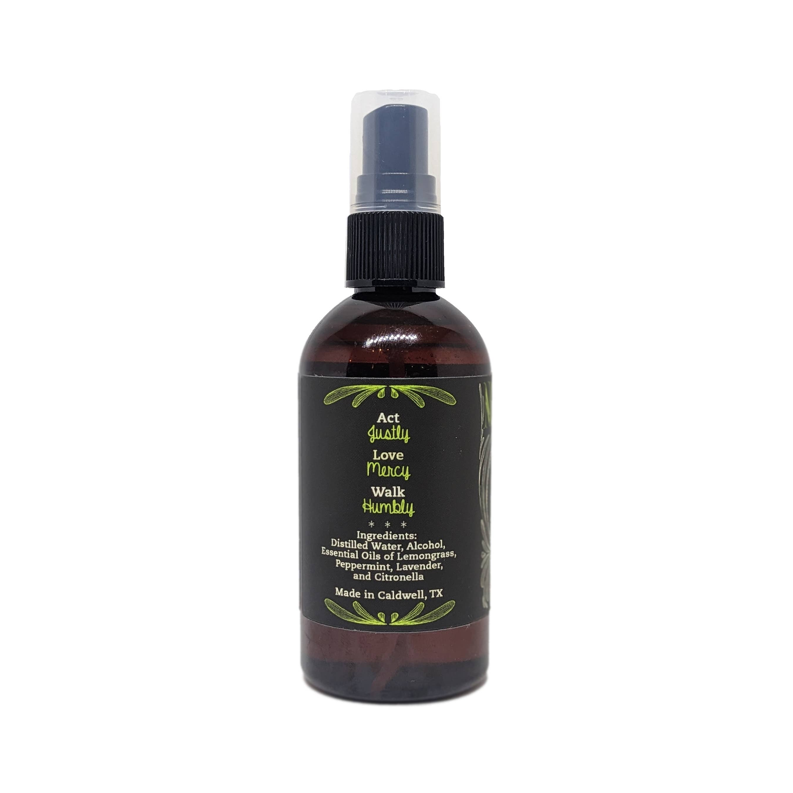 Ingredients: Water, Alcohol, and the essential oils of Lemongrass, Peppermint, Lavender, and Citronella.
