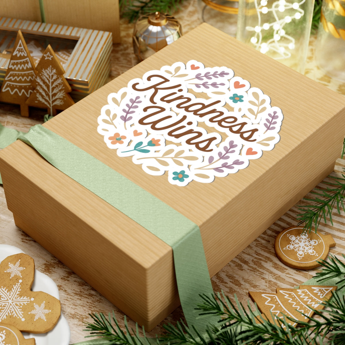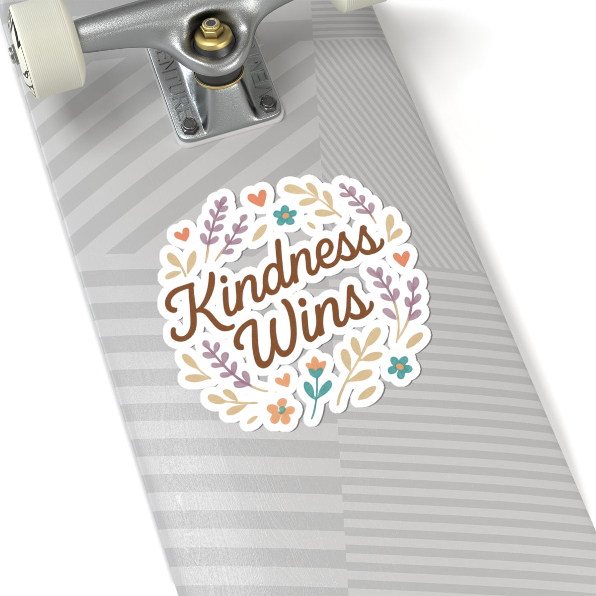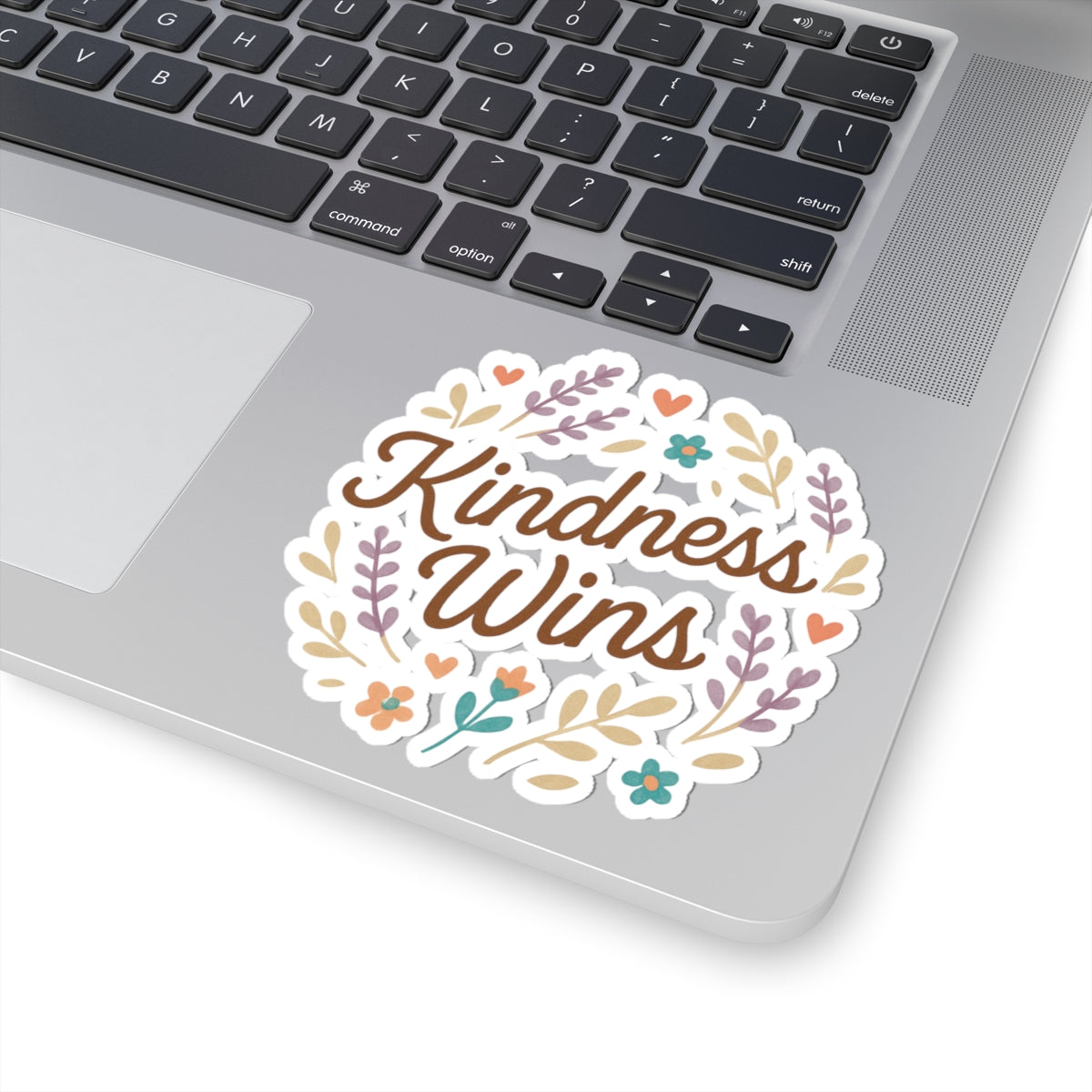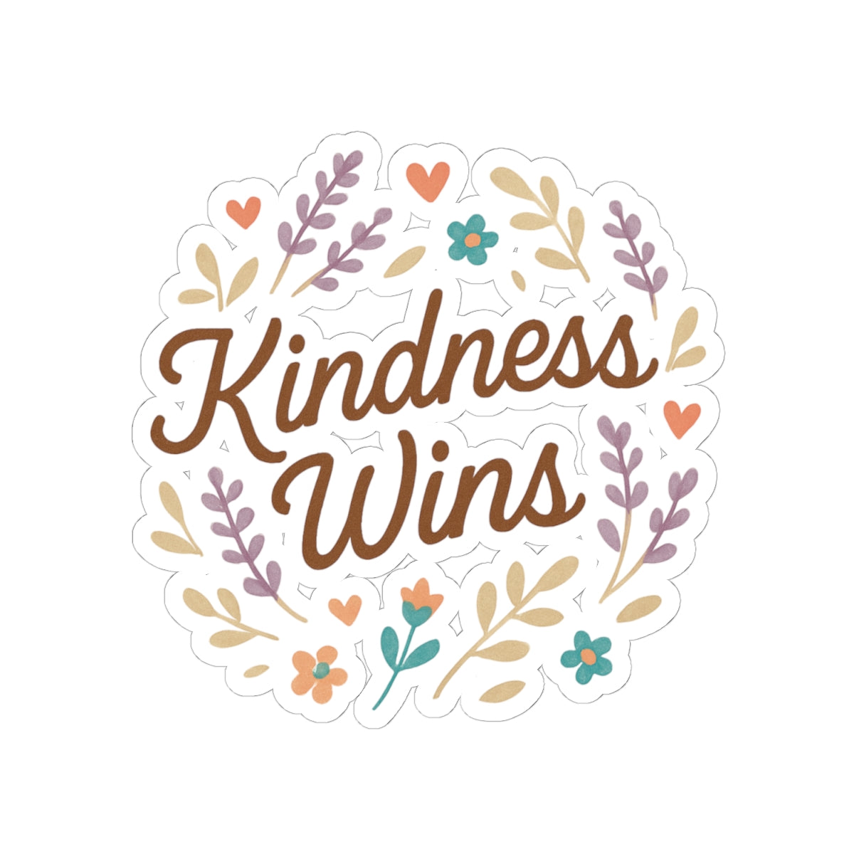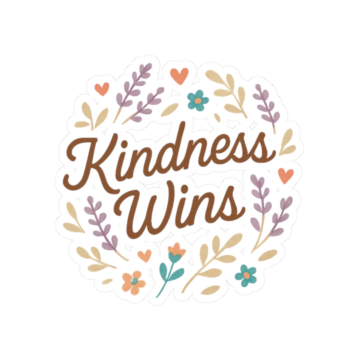 Kindness Wins Sticker — Floral Inspirational Kiss-Cut Sticker for Laptops, Water Bottles & Journals