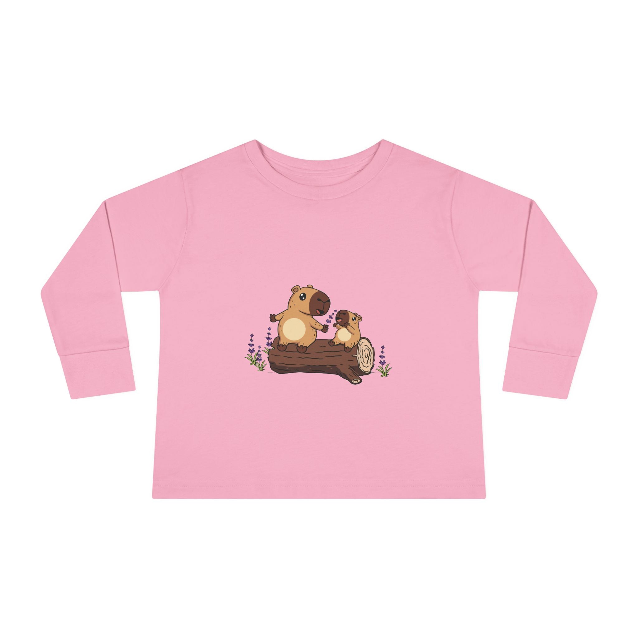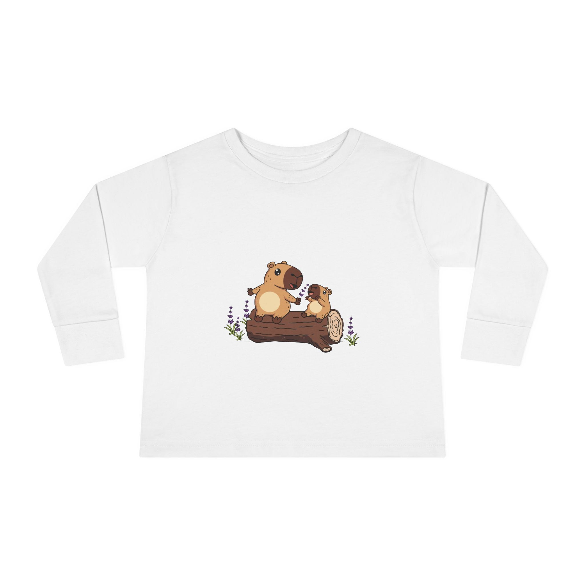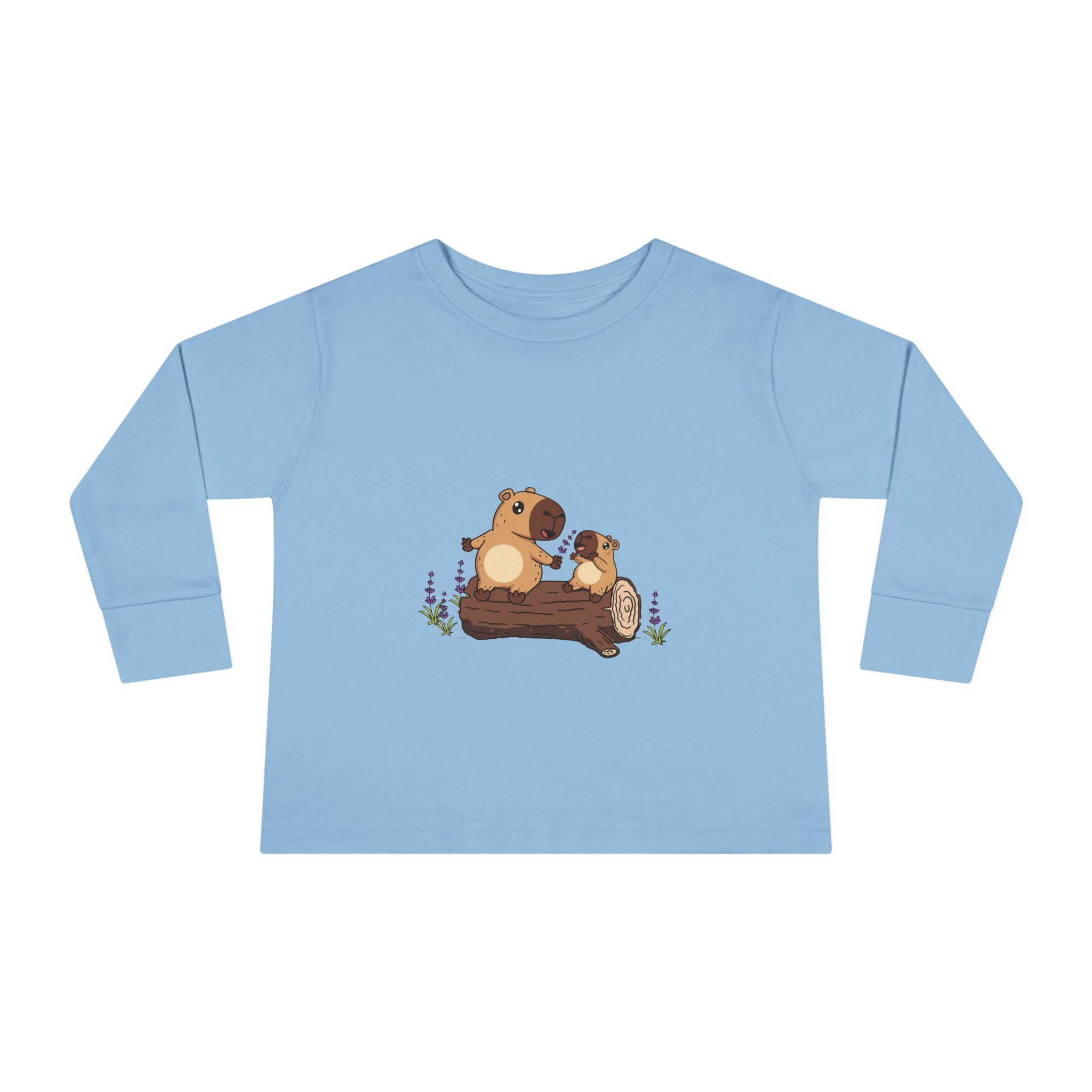 Toddler Long Sleeve Tee – 'Kindness Wins' Cute Capybara Friends Graphic Kids Shirt